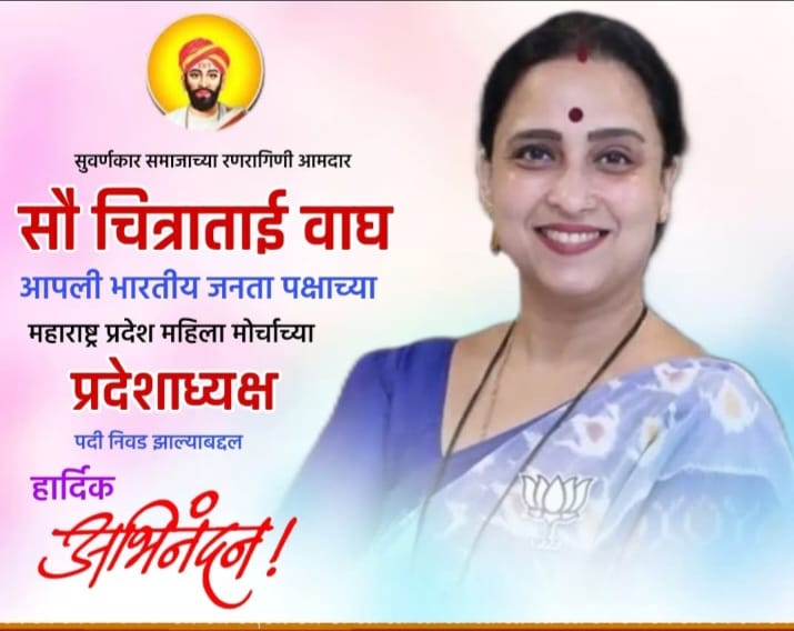 *सविस्तर वृत्त असे की नुकतेच सौ चित्राताई वाघ यांची भारतीय जनता पक्षाच्या प्रदेश महाराष्ट्र महिला मोर्चाच्या प्रदेशाध्यक्षपदी निवड झाल्यामुळे सुवर्णकार समाजातर्फे अनेक ठिकाणी त्यांचे अभिनंदन करण्यात आले. त्यांच्या भावी वाटचालीस हार्दिक हार्दिक शुभेच्छा देण्यात आल्या सकल भारतीय सोनार समाज संघटन सोनार सोनीसुवर्णकार समाज विधी चला समुपदेशन केंद्र केंद्र पुणे नाशिक धुळे सकल ओबीसी सेतुबंधन युनिव्हर्सल विश्वकर्मा वंशज फाउंडेशन इंटरनॅशनल वंशावळी डॉट कॉम पुणे ऋग्वेद सुवर्ण वार्ता युट्युब प्रसार वाहिनी नागपूर अखिल माळवी सोनार महासंघ अखिल देशस्थ दैवज्ञ सुवर्णकार संस्था महाराष्ट्र राज्य प्रांतिक संघटना अखिल वैश्य सोनार महासंघ दैवज्ञ सोनार महासंघ महाराष्ट्र राज्य अकोला तसेच दैवज्ञ सोनार महासंघ संलग्न सर्व दैवज्ञ करणार यांच्या दैवज्ञ सेवाभावी संस्था नांदेड प्रतिष्ठान छत्रपती संभाजी नगर महासंघ मिक्स सुवर्णकार मध्यवर्ती मंडळ श्री संत नरवी मार्ग पूर्ण करण्यासाठी जिल्हा नाशिक भारतीय नरहरी सेना पंढरपूर जिल्हा सोलापूर अखिल भारतीय लाड सुवर्णकार समाज सुवर्ण विद्यापीठ भारतीय सुवर्णकार समाज संस्था नागपूर महाराष्ट्र प्रदेश महाराष्ट्र राज्य ग्रामीण सोनार संघटना सोनार समाज संस्था सोलापूर एकता फाउंडेशन कोल्हापूर अज मि ढदेव जनकल्याण संस्था मुंबई मुंबई प्रदेश क्षेत्रीय सोहळा समाज सुवर्णकार केतू स्वर्ण कला सोसायटी उत्तर प्रदेश प्रया राजतसेच सेतुबंधन मधील विविध सोनार संस्था आणि संघटनांनी त्यांच्या निवडीबद्दल अभिनंदन केले आहे व तसेच ठराव केले आहे