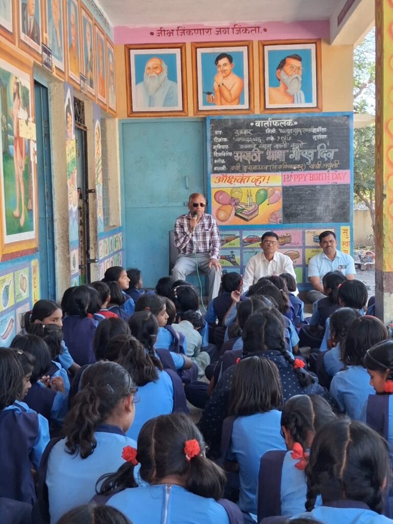 २७ फेब्रुवारी शुक्रवारी मराठी भाषा गौरव दिन साजरा झाला. त्यानिमित्त वक्ते म्हणून देवीभोयरे येथील जि.प. केंद्र शाळेत ते बोलत होते.
